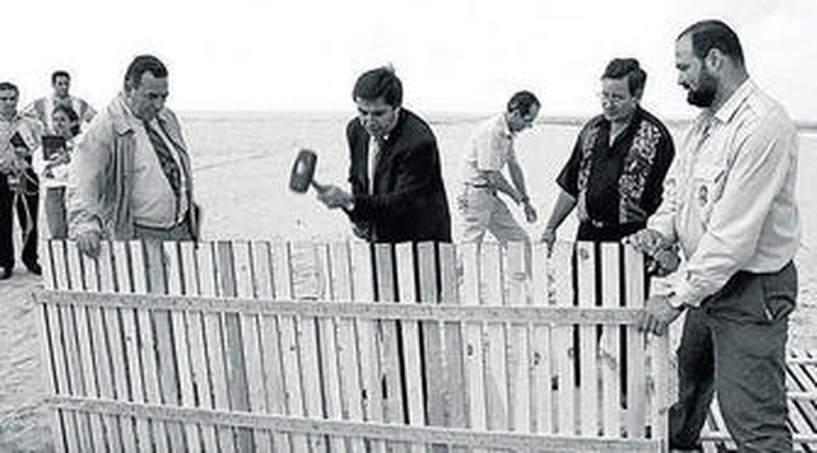 Hay protestas de finales de los 80, pancartas por un Camposoto libre, lemas contra el campo de tiro, un antigua carretera de acceso invadida por las cabras, el actor Charlie Sheen malherido entre las dunas en el rodaje de la película Navy Seals, el primer chiringuito, noveles voluntarios de Protección Civil a bordo de una zodiac recién estrenada, el alcalde Antonio Moreno inaugurando temporadas, proyectiles varados en la arena, pateras que hablan del drama de la inmigración, alijos incautados en operaciones antidroga... Es la memoria de la playa isleña que, alcanzado el ecuador del 25 aniversario de su apertura a la ciudadanía, ha tomado cuerpo en torno a una exposición de Enrique Rioja, decano de la prensa isleña y fotógrafo de Diario de Cádiz en San Fernando desde hace casi tres décadas.