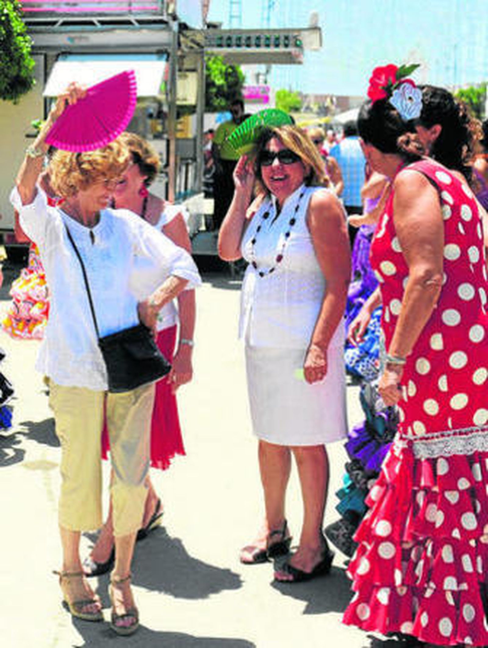 La imagen que a primeras horas de la tarde ofrecían grupos de mujeres cobijándose en la reducida sombra que brindaba la portada del recinto ferial era reveladora.