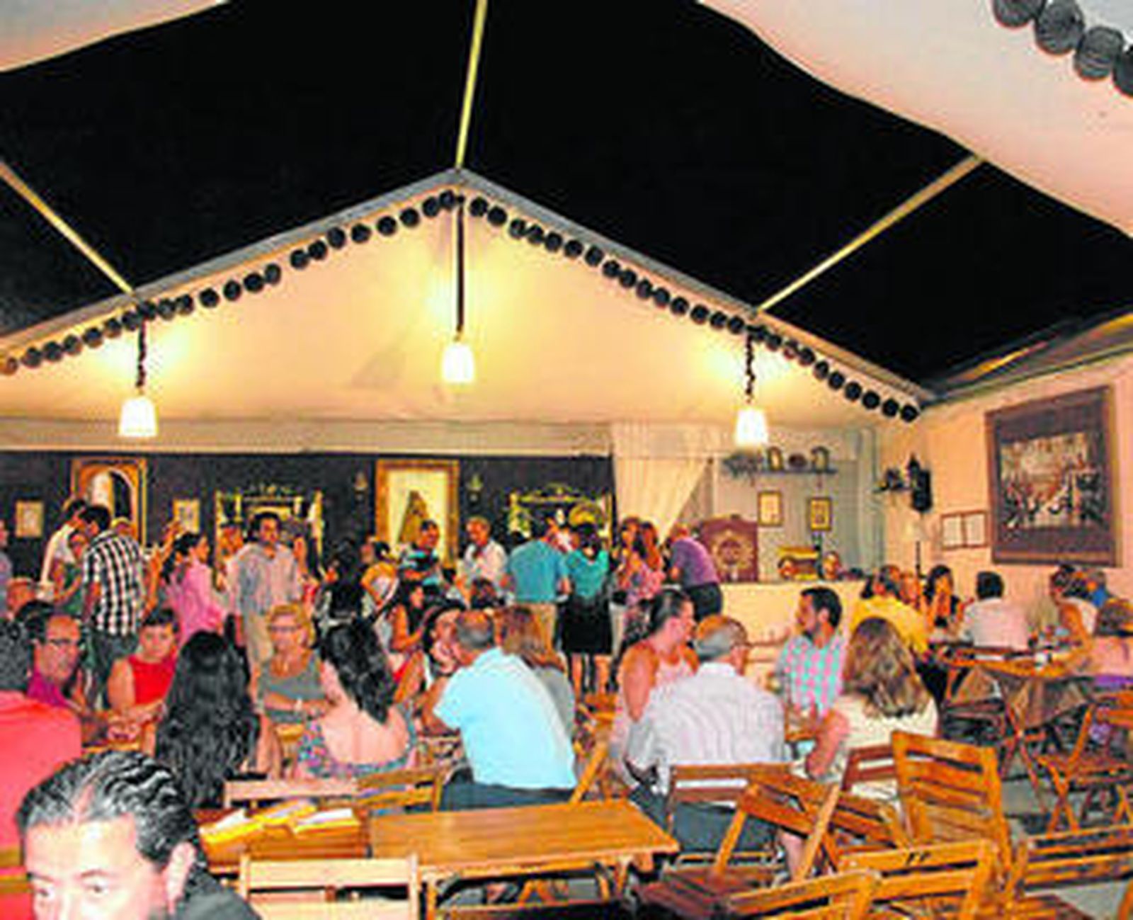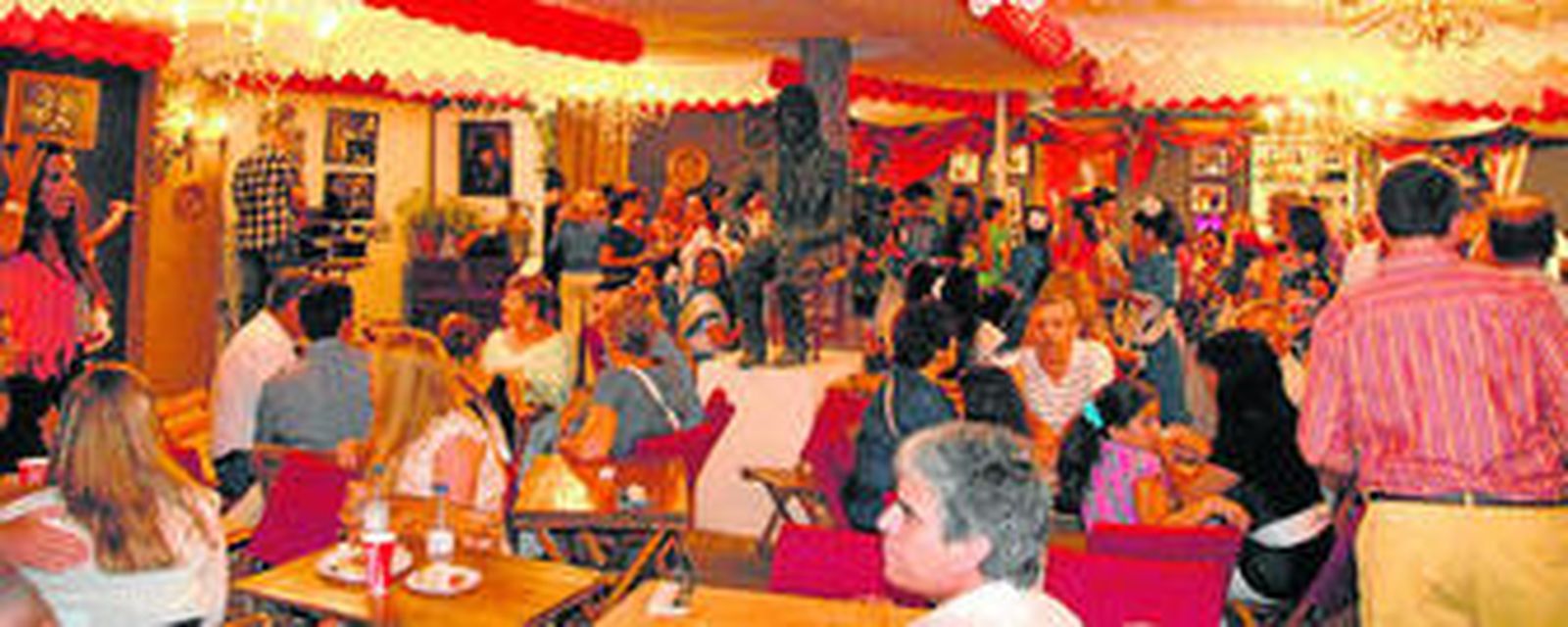 En la caseta del CB Cimbis tratan de hacer frente a la crisis mediante diversas iniciativas para atraer más público y que van desde la visita de grupos de baile infantiles acompañados por sus respectivas familias hasta una política de ahorro en lo concerniente a la instalación o al consumo de energía. "Ya el año pasado optamos por cambiar algunas marcas de bebidas", indica Pedro Ortega, director del club de baloncesto, "pero las familias y aficionados continúan acudiendo porque son conscientes de la calidad de nuestra cocina". Los del Camino, caseta de ambiente familiar con varios premios gastronómicos en su haber, sigue valiéndose de precios populares para afianzar su clientela. "Nuestro enganche son los serranitos", comentan desde la barra, a la par que aseguran la necesidad de compatibilizar calidad en los productos y buenos precios.