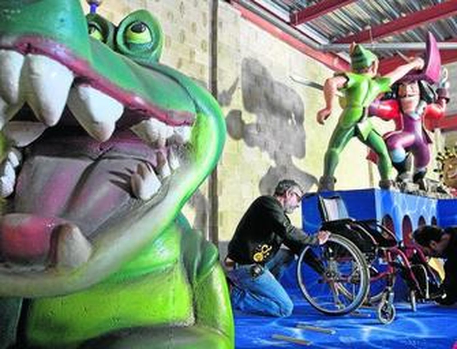 Los anclajes que son necesarios para la seguridad de estas personas se resuelven en esta ocasión con guías puesto que subirán a la carroza con sus sillas de ruedas. En otras localidades, como Sanlúcar, la empresa artesana ya había modificado estos elementos móviles para personas con discapacidad. Sin embargo, en esas iniciativas sólo habían hecho falta unos anclajes para soportar sillas de madera y poner unos cinturones de seguridad. "En este caso Upace nos explicó que iban a ir con sus sillas, por lo que optamos por instalar unas guías, como las que usan en los autobuses que los transportan", explicaba Antonio Ocaña, de Imaginarte. Con una máquina municipal izarán las sillas, que quedarán ancladas con las mencionadas guías. Al ocupar tanto espacio sólo cuatro personas de Upace podrán en esta ocasión disfrutar de la cabalgata, algo que se intentará mejorar en las próximas ediciones.