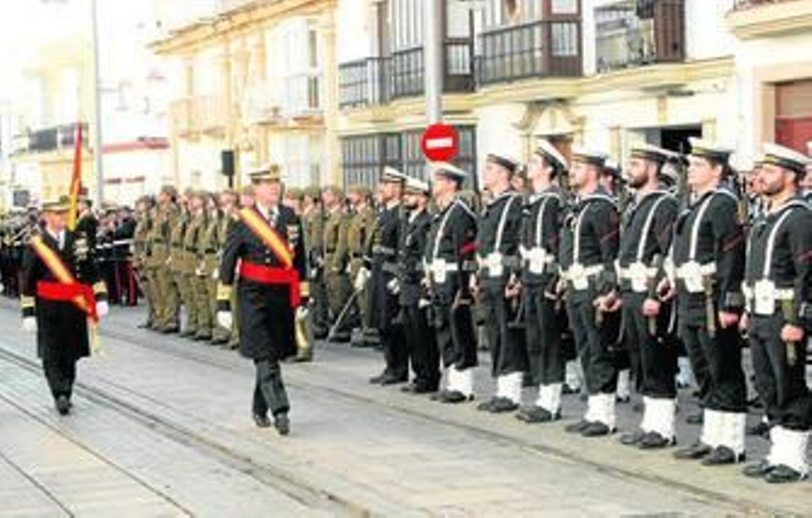 La celebración de la Pascua Militar ayer en San Fernando culminó con un desfile de la fuerza participante, integrada, además de la escuadra de gastadores y de la unidad de música del Tercio Sur, por secciones de Infantería de Marina, de Marinería (procedentes de la Fuerza de Acción Naval y de la Flotilla de Aeronaves) y del Ejército de Tierra (Regimiento de Artillería de Costa número cuatro de Camposoto).
