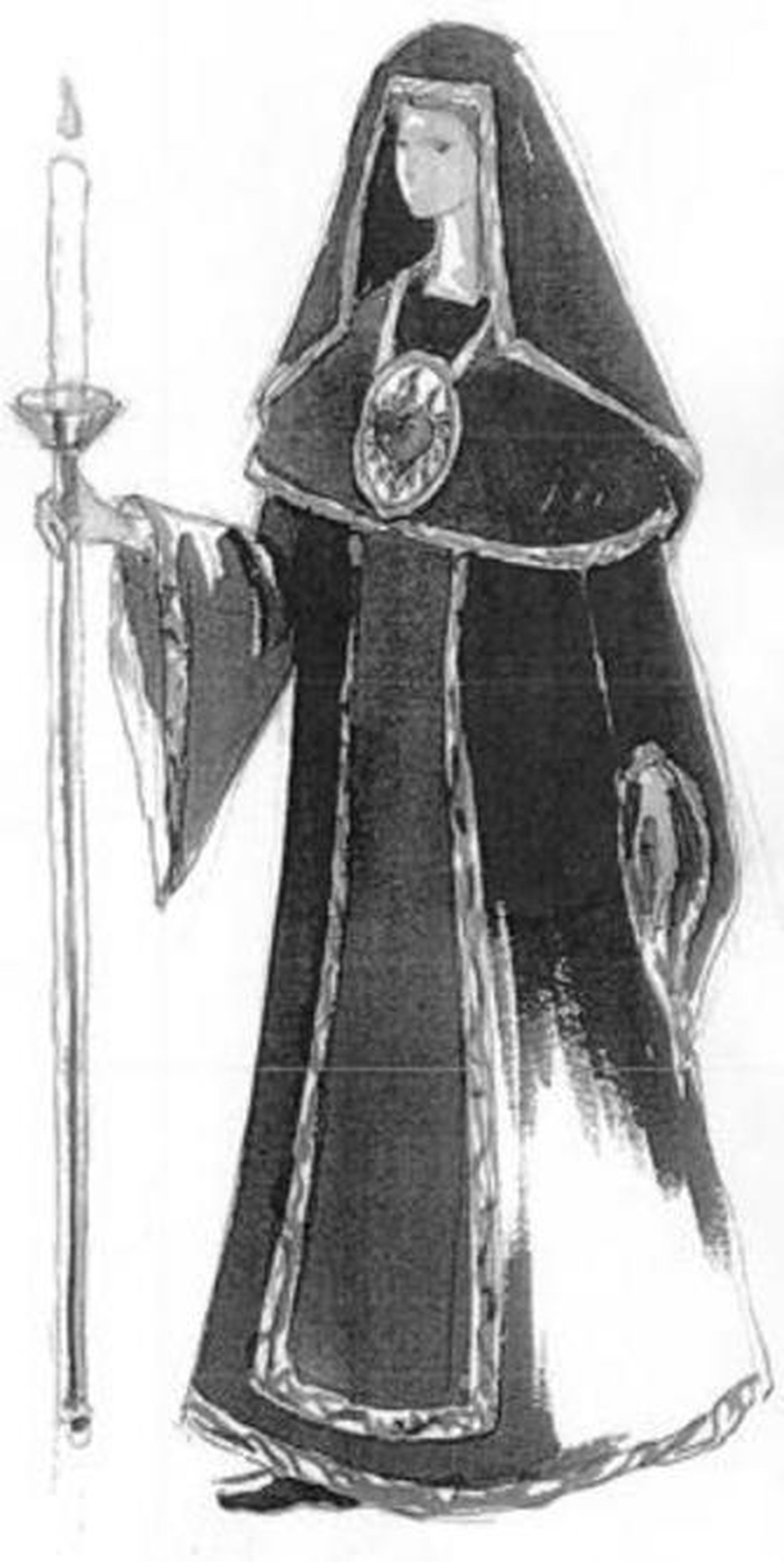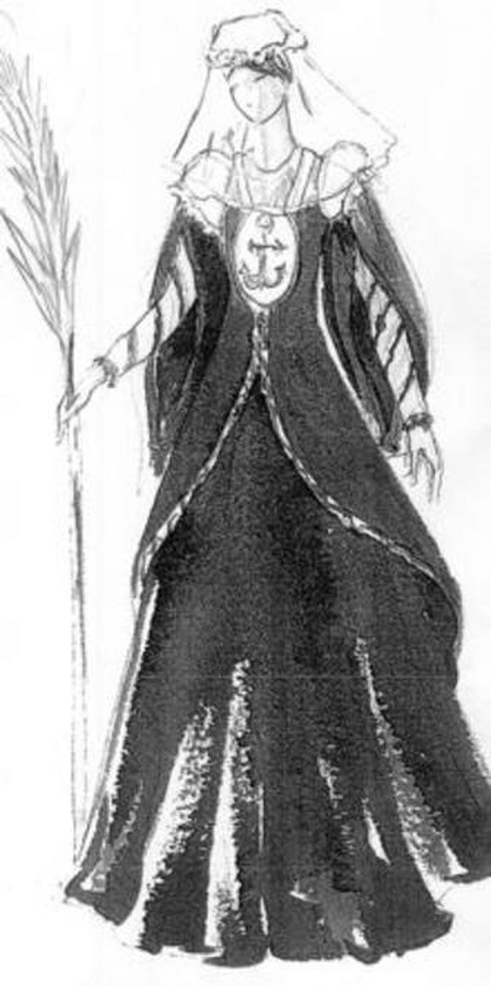 Así, la Caridad -que irá en el centro de la representación en la calle por su simbología como principal virtud- "se ha caracterizado como una dueña o prelada, ya que se identifica con la entrega y el amor que realiza la propia Iglesia a través de sus órdenes religiosas", explican. Esta virtud se representa con un hábito de terciopelo burdeos, un tocado monjil y un escapulario de raso color guinda. Además, portará un cirio de color azul (propio de la Caridad).