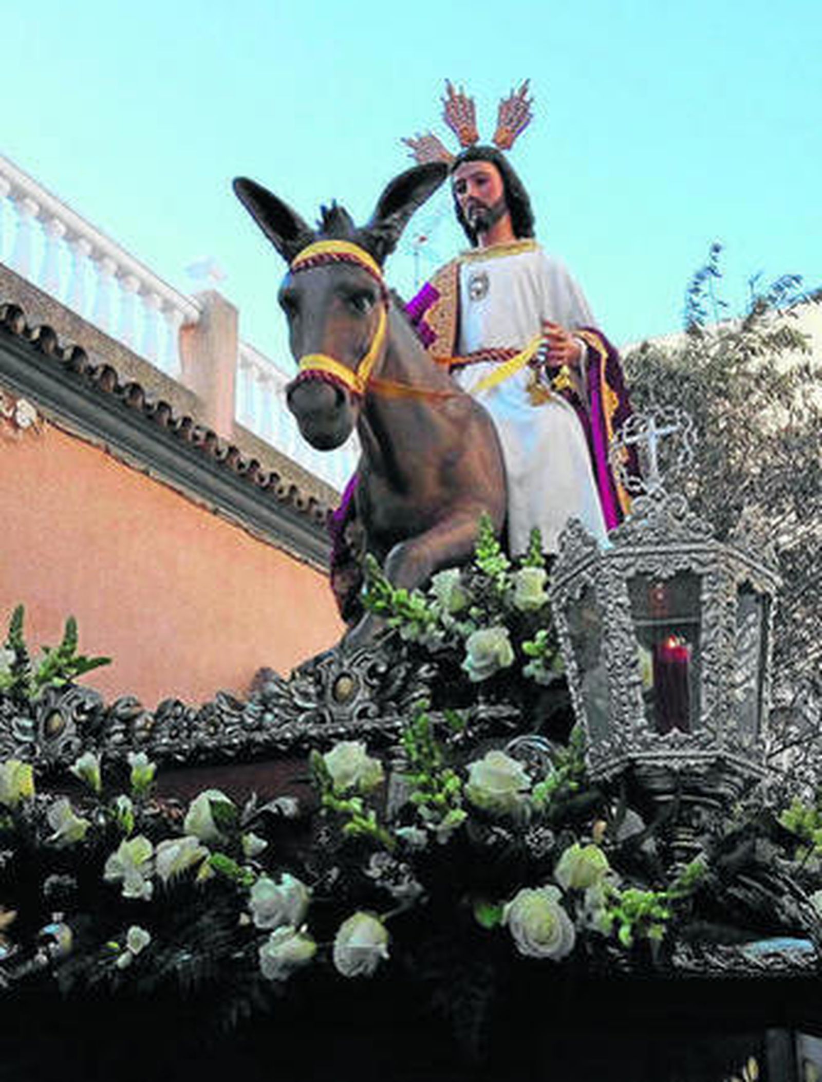 Esta salida procesional, que se hace desde la parroquia del Mártir San Jorge, se caracteriza por el carácter viviente que tiene, donde el personaje de Jesucristo también va a lomos de un pollino.