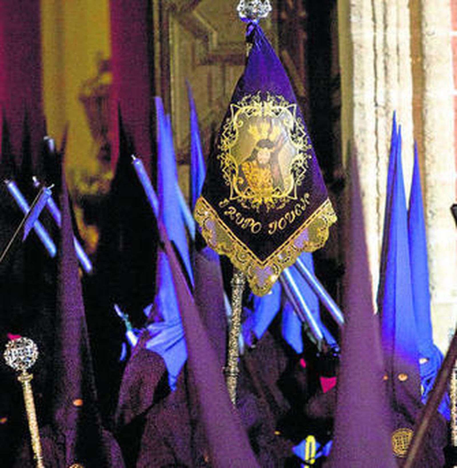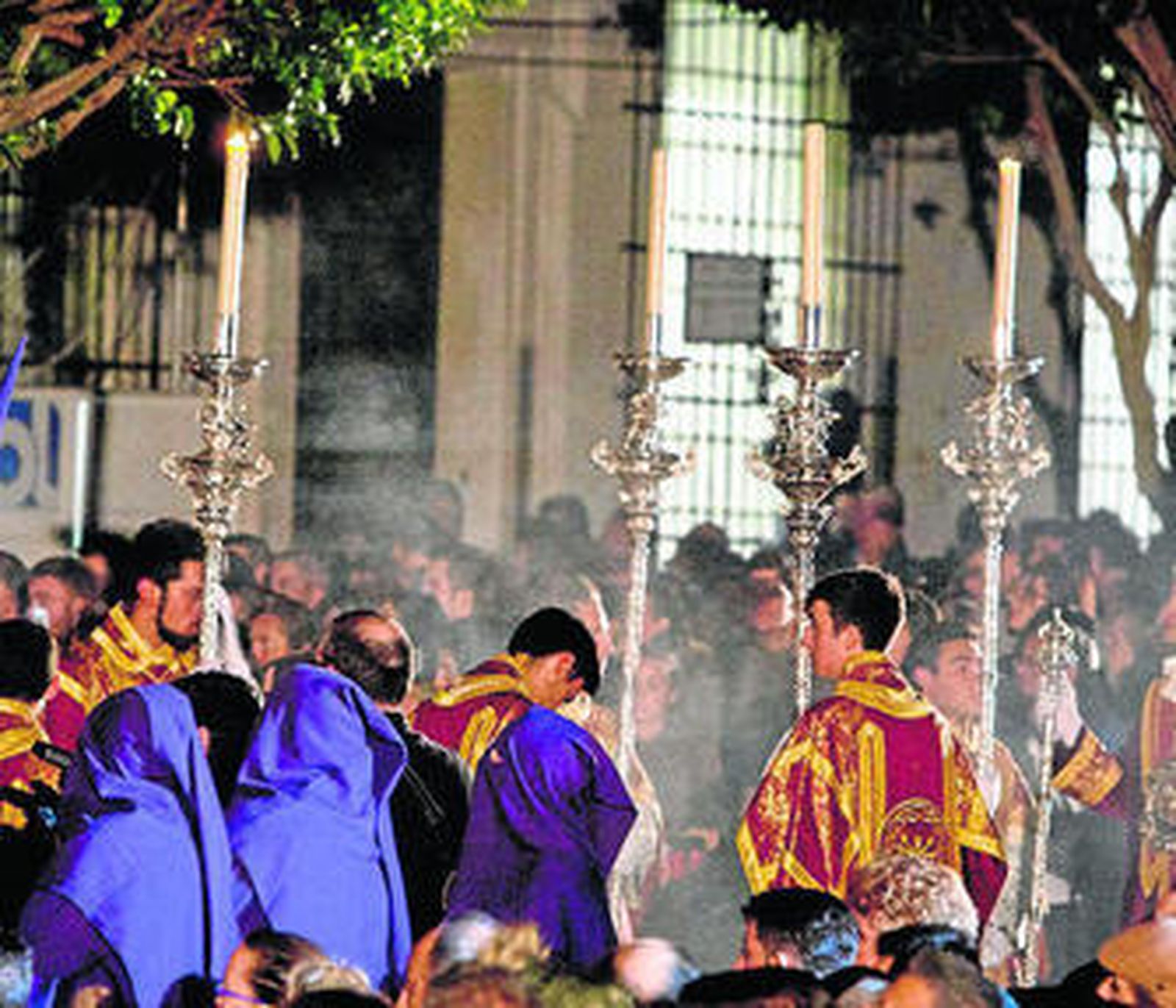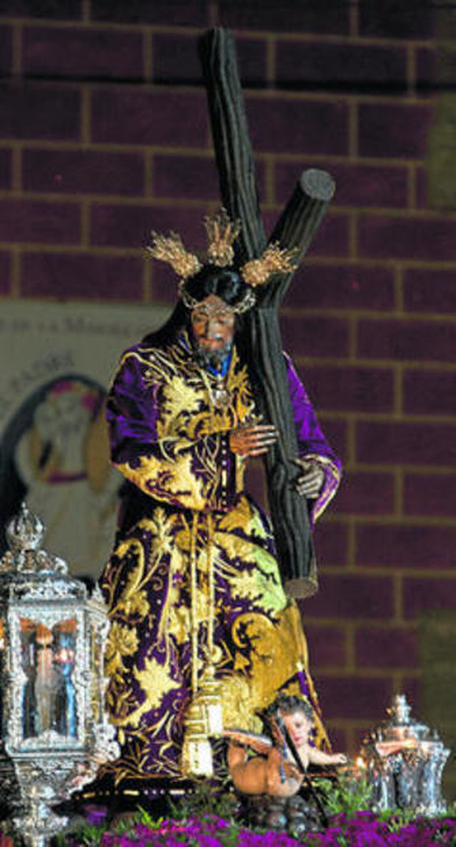 Gustó el empaque que esta antigua y señera hermandad mostró en su recorrido procesional, esa puesta en escena de su cortejo, sus secciones de hermanos con la característica túnica morada y sus cirios en alto iluminando la calle Real mientras el paso se adivina a lo lejos y se hace esperar, sus destacadas insignias, sus clásicas bocinas, su cuerpo de acólitos... Todo fue de lo más cofrade.