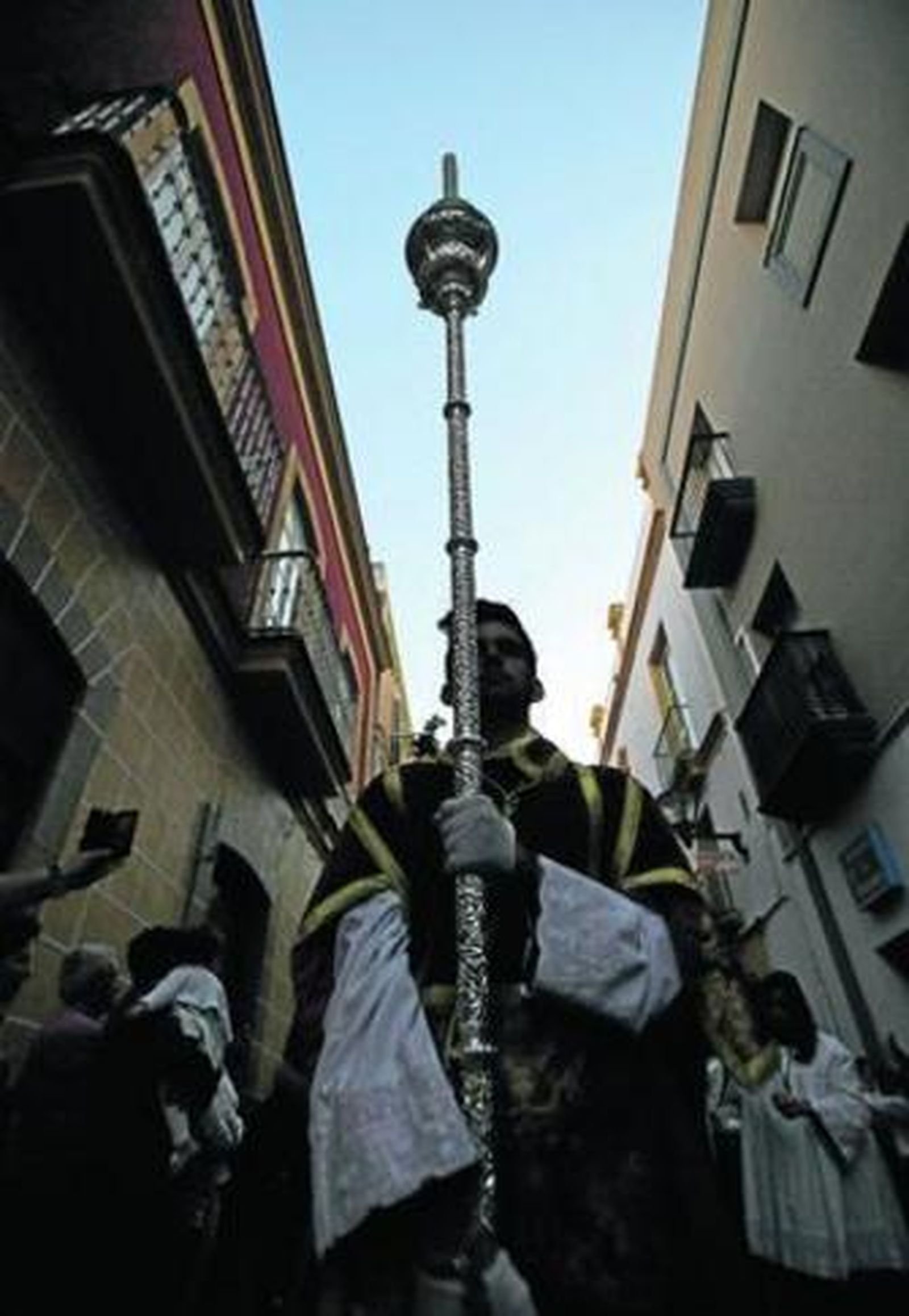Este año destacaba el nuevo atuendo del Cristo, una elegante túnica de color hueso bordada en el pecho y en las mangas y que ha sido diseñada y realizada por el renombrado sastre Salvador Egea. El Cristo avanzaba a los sones de la Agrupación Musical Santa María Magdalena de El Arahal (Sevilla), banda que hace apenas un mes ha sido galardonada en la capital hispalense por su trayectoria.