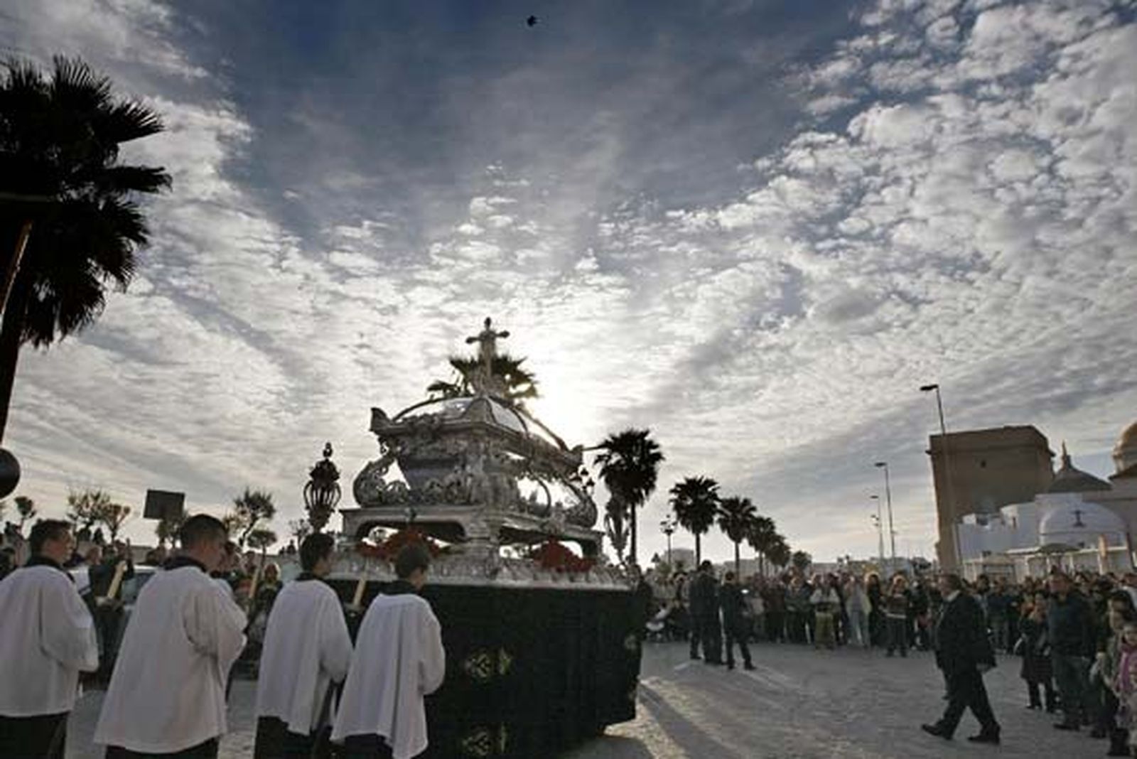 La joya de la cofradía, esa urna de plata, una de las maravillas de la Semana Santa gaditana, desfilará como viene siendo habitual, es decir, a ruedas. En alguna ocasión se cargó a hombros, aunque Eva reconoce que cada paso requiere lo suyo y éste no debe sufrir los movimientos propios de la carga. "Desde el año 1993 va a ruedas. Este paso no es para ir con bulla, cargado a hombros y soportando vaivenes. Somos conscientes de las especiales características que tiene tener por titular un Cristo yacente, que puede no llamar a la devoción tanto como otras imágenes. El fervor lo trae la Virgen de la Soledad".