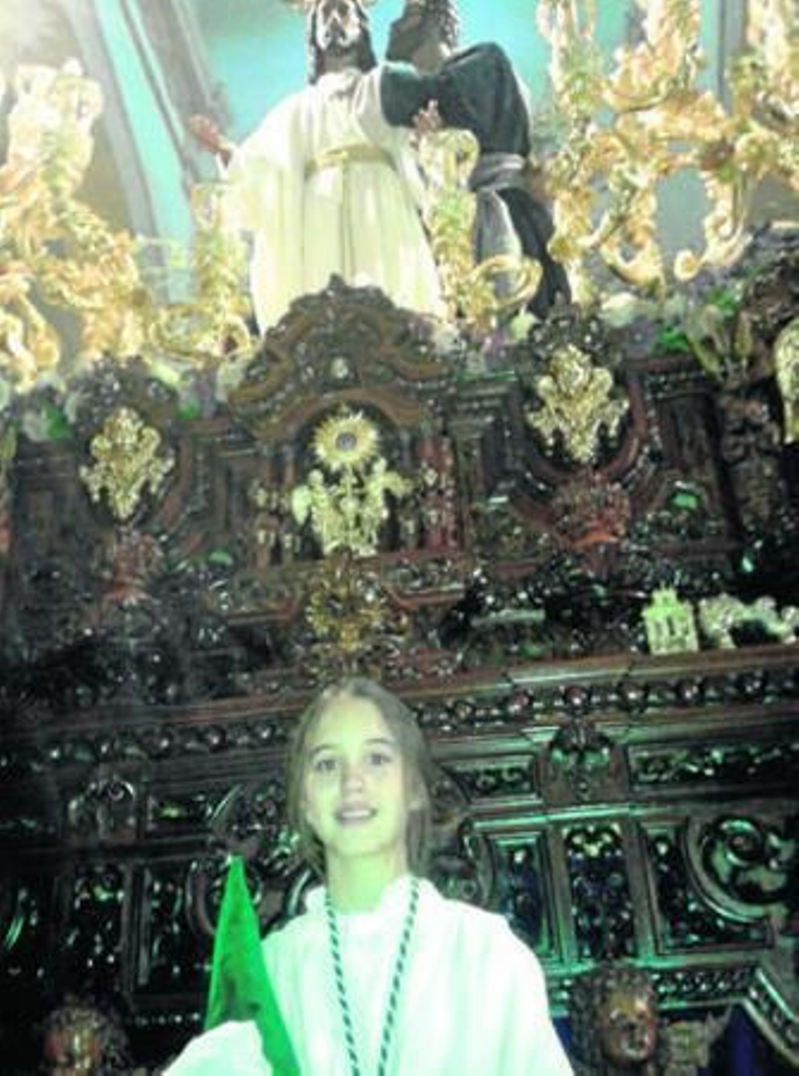 El pasado año salió como penitente en Sentencia, pero en esta ocasión ha variado y el Lunes Santo procesionó junto a su hermana Ana y sus primos maternos en La Palma.