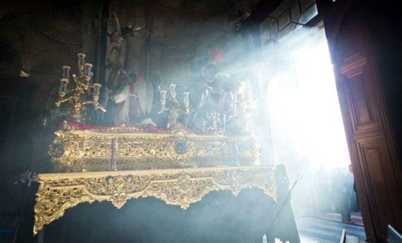"Contamos con sólo dos centímetros por cada lado para que el paso salga a la calle. Va a lo justo en una maniobra complicada. Ya luego, en el resto del recorrido es más fácil", comenta el responsable del paso desde hace nueve años, Juan Manuel López Gallardo. Su cuadrilla está formada por seis palos de once hombres; dos de ellos son enteros de relevos que saben perfectamente en qué parte del recorrido deben realizar el cambio. Además, para poder tener más movilidad cargan en cremallera, con los pateros un poco más adelantados a los del centro. "Esto les hace sufrir más, pero en un paso tan estrecho cuando llevas gente grande es lo mejor", comenta Juanma, que explica también que la salida "la hacen sólo ocho hombres por palo y lo llevamos a ruedas para facilitar la maniobra".