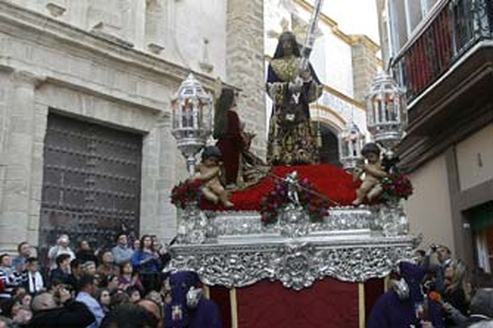 Por la tarde, con mucha antelación a la salida, las calles Santa María y Jabonería ya estaban llenas de público para ver bajar a la cofradía del Nazareno, después de dos años sin realizar la estación penitencial, mientras que al templo iban llegando los hermanos que iban a acompañar a Jesús Nazareno y a la Virgen de los Dolores por las calles gaditanas, entre ellos tres generaciones de una misma familia, como las de José Luis García Villar y Enrique Cabrera Capitán, hermano mayor y mayordomo respectvamente, de anteriores juntas de gobierno.