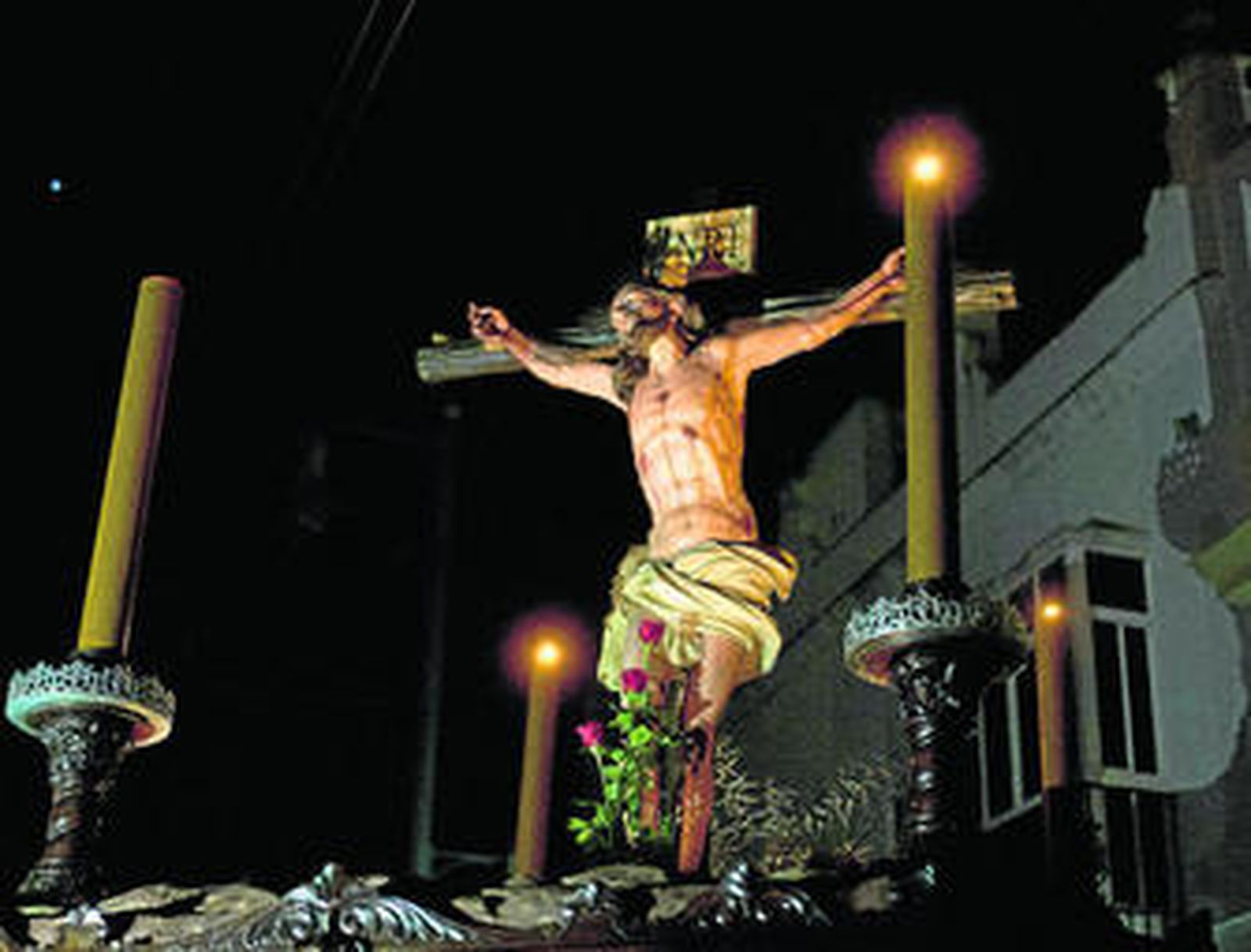 Y a la noche tocaba la última dosis prescrita por la receta de esta singular la jornada, indispensable para afrontar con nuevos bríos la velada más larga del año. A las nueve y media salió de la parroquia castrense de San Francisco la hermandad de la Expiración. El Silencio, que con su sello personal vino de nuevo a poner el contrapunto perfecto a esa tarde de luz que había comenzado siete horas antes, la que Tres Caídas había aprovechado bien al salir de su barrio y la que dibujó la estampa del crucificado de La Casería sobre el cielo infinito de la Bahía. El Jueves, cual metáfora de la Pasión, fue de esa estampa luminosa a la oscuridad total y sobrecogerdora que la calle Real mostraba al filo de las diez de la noche, cuando el Cristo de la Expiración avanzaba hacia el centro.