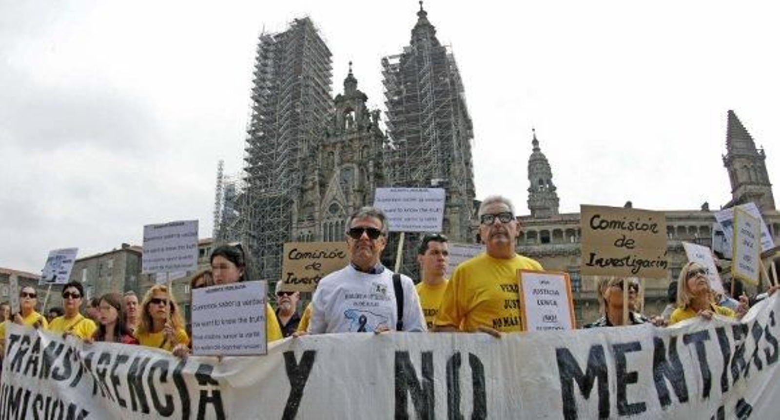 Víctimas de la tragedia ferroviaria del 24 de julio de 2013 han expresado en una protesta celebrada en la Plaza del Obradoiro su perdón al maquinista de ese tren al entender que se ha intentado culpar a un hombre que tuvo un "error humano" en un trazado que no contaba con la seguridad idónea.