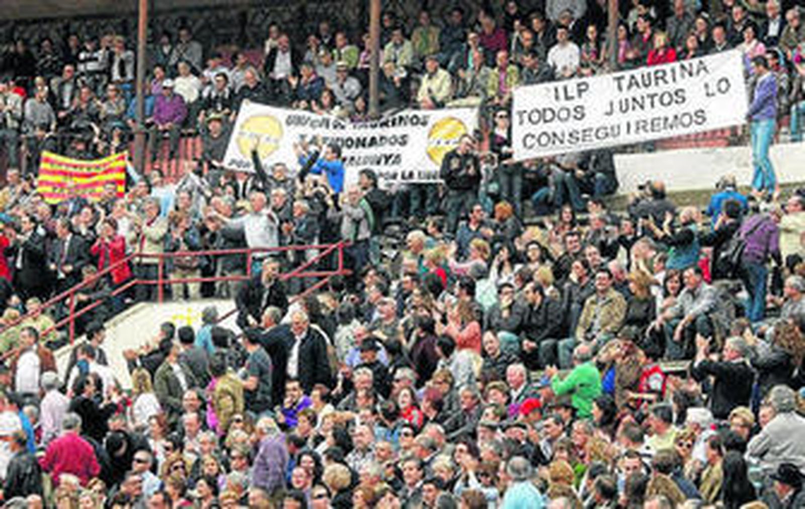 Tras romper el paseíllo, un amplio grupo de la Unión de taurinos y aficionados de Catalunya mostró sus banderas reivindicando la Fiesta en su comunidad y fueron fuertemente ovacionados. Previamente al festejo se manifestaron frente a la plaza de toros.